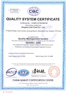- Our company is HACCP-system certificated in December 2004. We have implemented it in our quality control system.